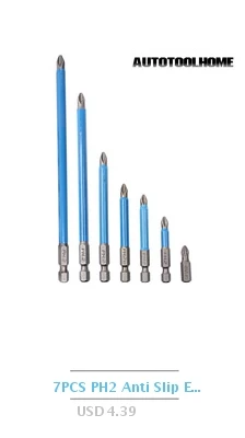 Хвостовик Размеры: 6,3 мм (1/4 дюйма); Общая Длина: 50 мм; Бит Тип: PH1 PH2 PH3 PZ1 PZ2 PZ3; Отделка: пескоструйная обработка; Материал: S2 из алюминиевого сплава