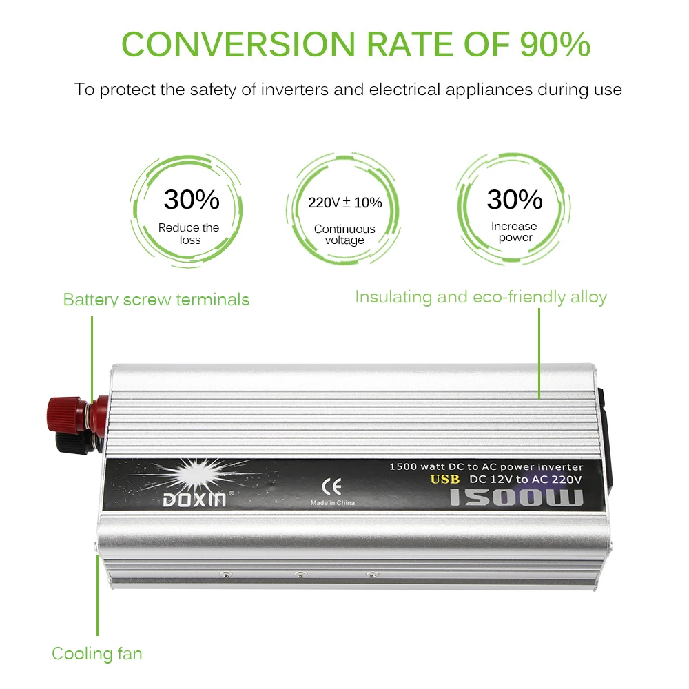 1500 Вт автомобильный инвертор, преобразует 12 В постоянного тока в 220 В переменного тока.