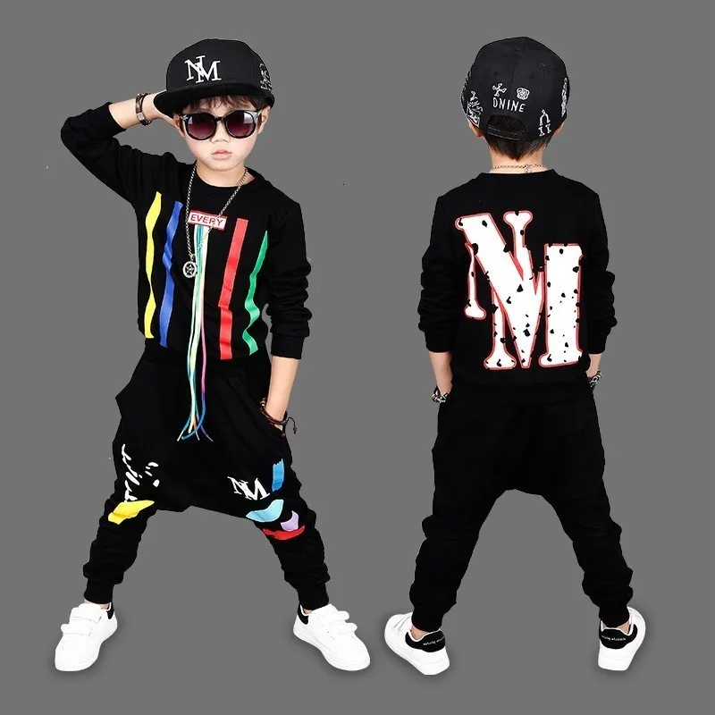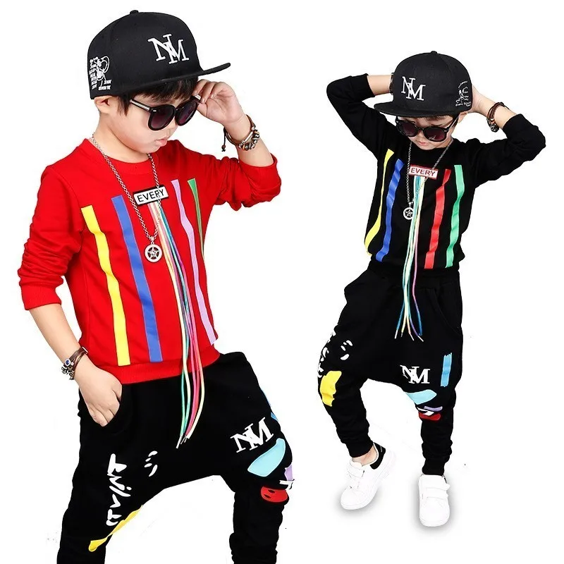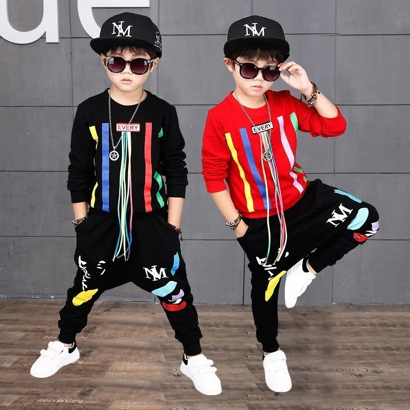 2018 осенний модный спортивный костюм в полоску для мальчиков Детский хлопковый