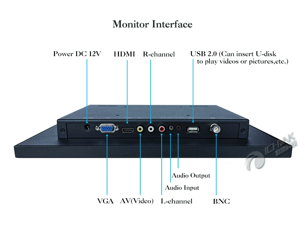 Интерфейс монитора: | AV/BNC/HDMI/USB/VGA 5 видов интерфейсов; (usb-порт может быть вставлен в u-диск для воспроизведения изображений или видео и т. д.) |