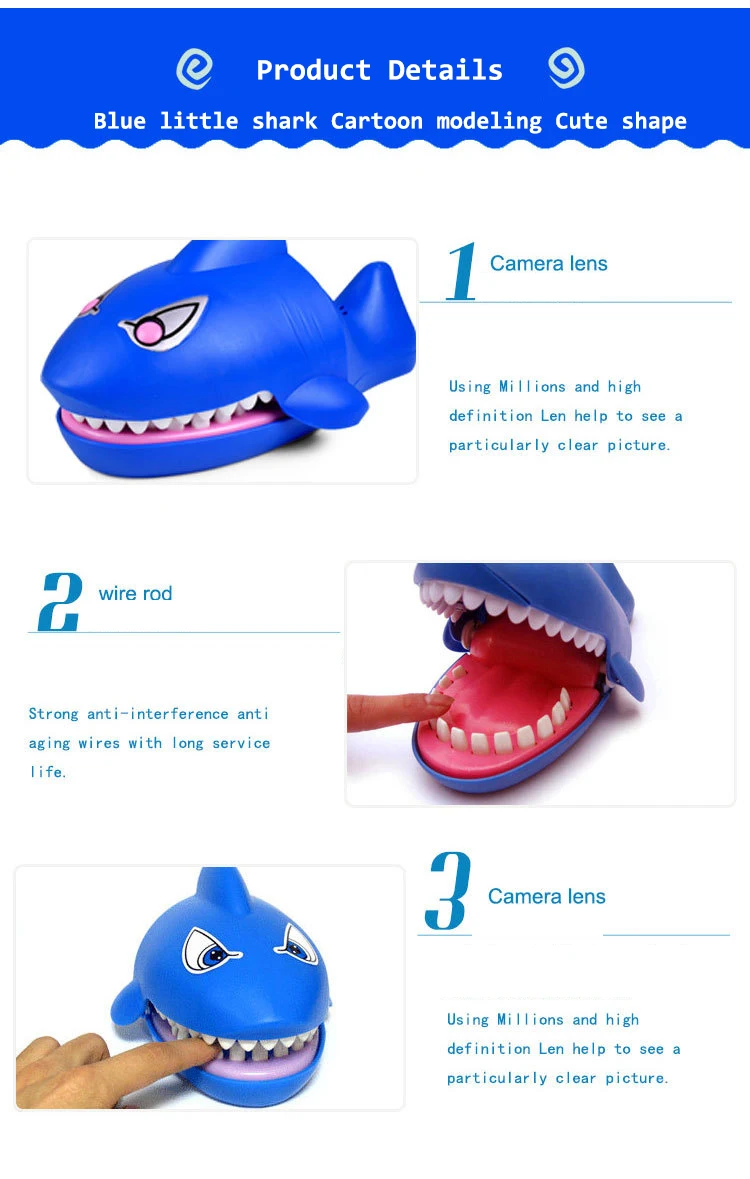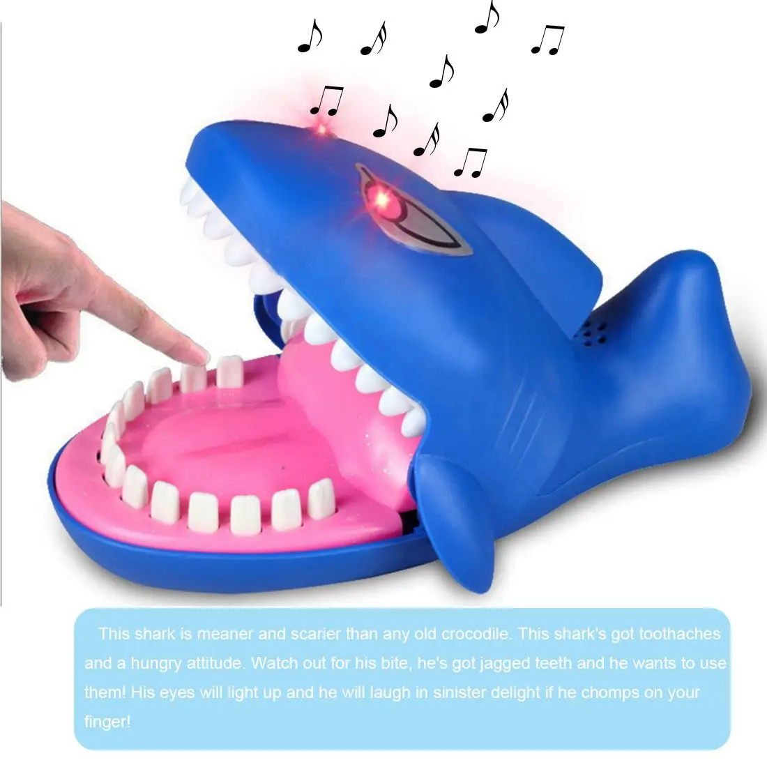 Артикул: D09020000127801 Мультяшная Акула кусает всю руку, игрушка для детей, розыгрыш, Акула, кусает палец, весь человек, детская игра, настольные игрушки Название: Акула стоматолога игра игрушка для детей злой смех светящиеся глаза больше удовольствия, чем крокодил Питание от батареи синий Тип товара: хитовая игрушка Цвет: синий Материал: экологически чистый пластик Уникальный: смех светящиеся глаза Источник питания: 2 * AA батареи (не входят в комплект) Размер изделия: 22*12,5*9,5 см Вес изделия: 280 г Размер упаковки: 22,5*17*12,5 см Характеристика * 1. Эта акула грубее и страшнее любого старого крокодила. У этой акулы есть зубные боли и голод. Следите за его укусом, у него зубные зубы, и он хочет их использовать! Его Светильник поднимет глаза, и он будет смеяться в зловещем светильник, если он прижмет на вашем пальце! * 2. Правила просты. Акула имеет набор из 13 зубов. По очереди нажимайте на зуб, но не выбирайте его больной зуб! Иначе Акула прижмет палец! Чтобы выиграть, будьте единственным Стоматолога, который не укусывается акулой. * 3. Эта акула полна сюрпризов. Каждый раз, когда вы открываете рот акулы, случайный зуб будет болеть. Вы никогда не знаете, какой зуб заставит его защелкнуться! * 4. Нажмите не тот зуб, и его глаза мигают, пока он смеется и отжимает челюсти на вашем пальце * 5. Требуется 2 батарейки АА (не входят в комплект). По сравнению с игрой стоматолога крокодила, эта акула имеет более сильный укус Посылка 1x Акула стоматолога игра игрушка