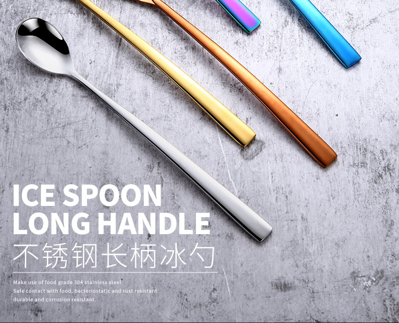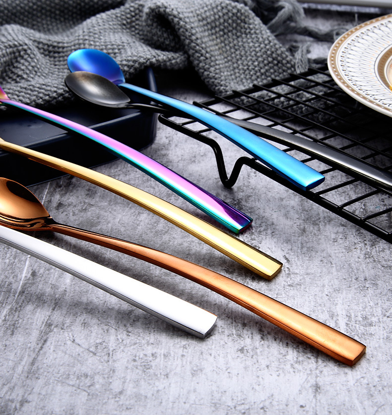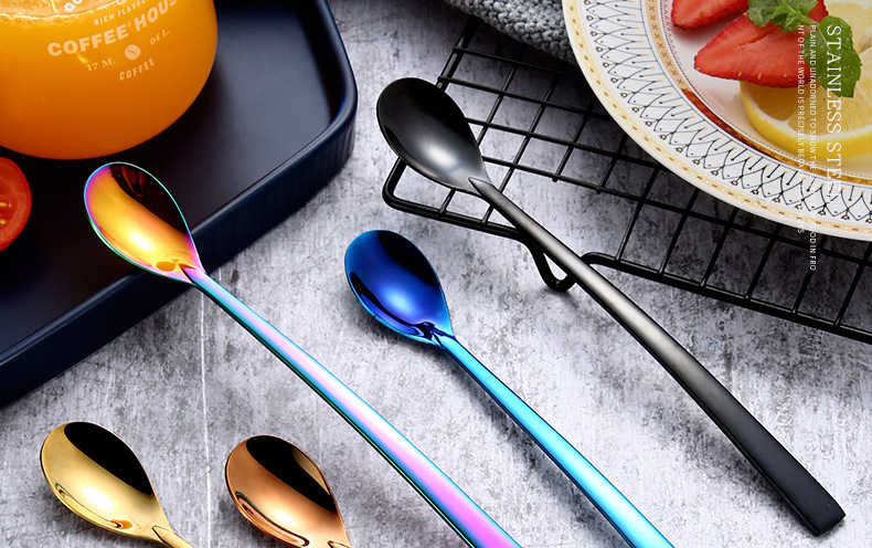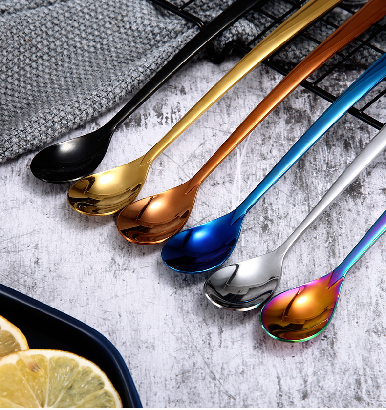 Ложка для кофе и чая из нержавеющей стали с длинной ручкой, кухонные красочные ложки для кофе, ложки для смешивания, ложки для мороженого, десерта, чайная ложка