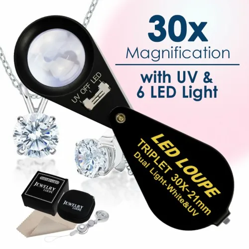 1x30x увеличение ювелирных изделий Лупа w/светодиодный и УФ