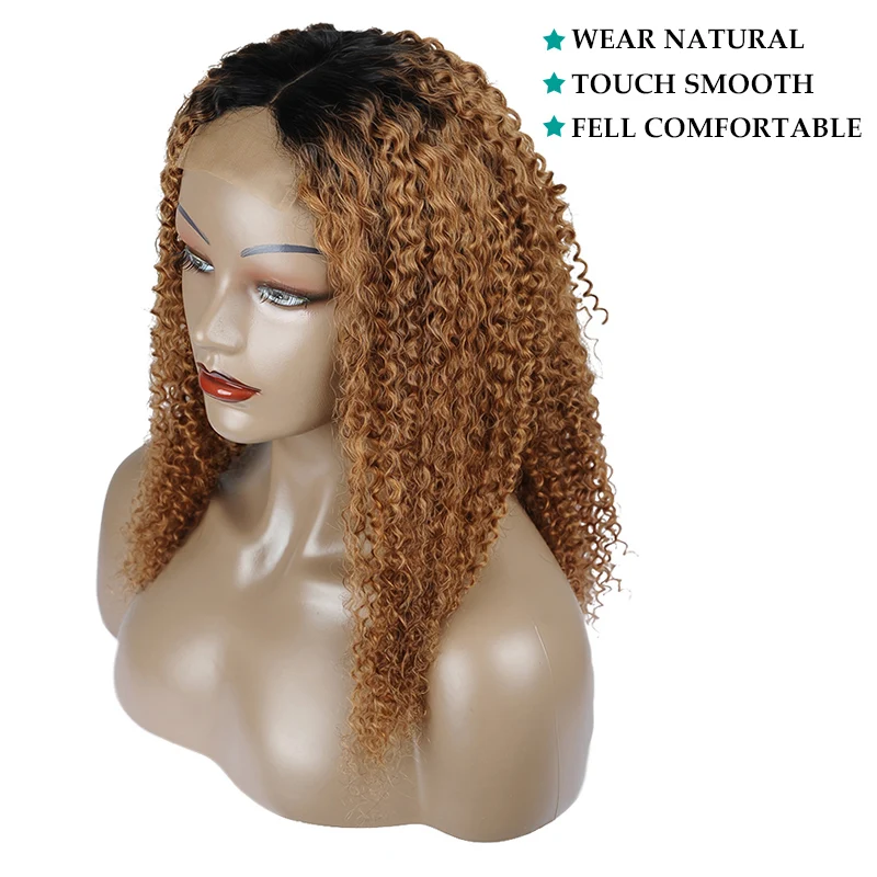 IEnvy Ombre длинные афро кудрявый вьющиеся человеческие волосы парик синтетические волосы на кружеве цветной коричневый блондин парик фронта шнурка бразильские парики для женщин NonRemy