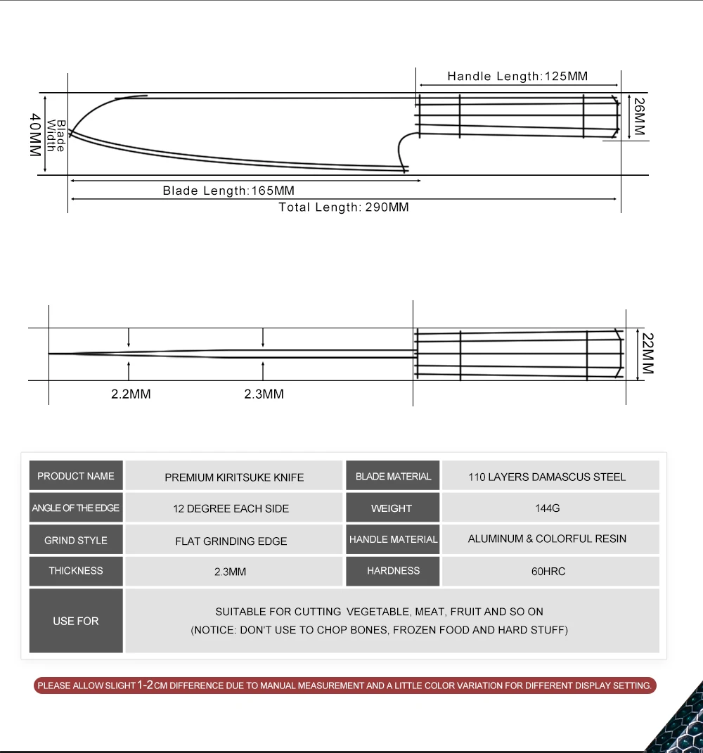 The handle is durable, non-slip, easy to clean. the handle of the knife is provides the max control on movements with minimum efforts.