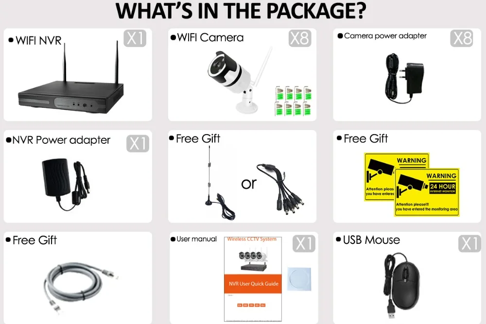 Подключи и играй. Любой может быть очень легко настроить эту систему Wi-Fi сетевого видеорегистратора без каких-либо впечатлений от установки безопасности. Вы можете получить доступ к удаленному просмотру видео в реальном времени через ПК/мобильный телефон в любое время и в любом месте.