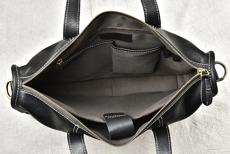 Material:Cow leather (Full Grain Leather) Lining: Polyester Style : Simple,Casual Weight : About 1.17kg Size: 39*27*9cm Gender: For Men Feature: (1) Internal one zip pocket、Computer Interlayer、two slot pockets and tow Pen hanging bags.External one zip pocket; (2) Simple design,Very classic wild handbag. (3) Business casual shape design, multiple uses; (4) Due to the event, other colors of new products cannot be updated in time, if you like caffee and brown, please contact me, we will note the color for delivery. Warm tips: (1) 1 inch = 2.54cm,1cm = 0.39inch (2) With the difference in the measurement method, please allow 1-3 cm in size deviation. (3)The product is taken in kind, but there will be some chromatic aberrations under different light environments and dmonitors, please understand. (4) The texture of cowhide is slightly different for different parts of the cow; for example, the texture of the neck and butt of the cow will be thicker, and the texture of the other parts of the cow will be thinner. Please understand.