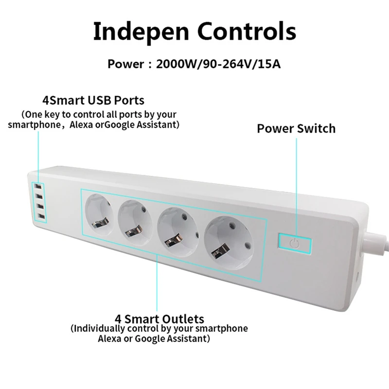 С умным беспроводным питанием вы можете использовать голосовое и Беспроводное дистанционное управление Wi-Fi.Wi-Fi разъем работает с amazon Alexa и Google home и имеет голосовые команды, которые вы хотите.Вы можете активировать или отключить его с помощью голосовых команд от Alexa или вручную активировать его через приложение на вашем телефоне или планшете.Умное управление теперь начинает вашу умную жизнь.