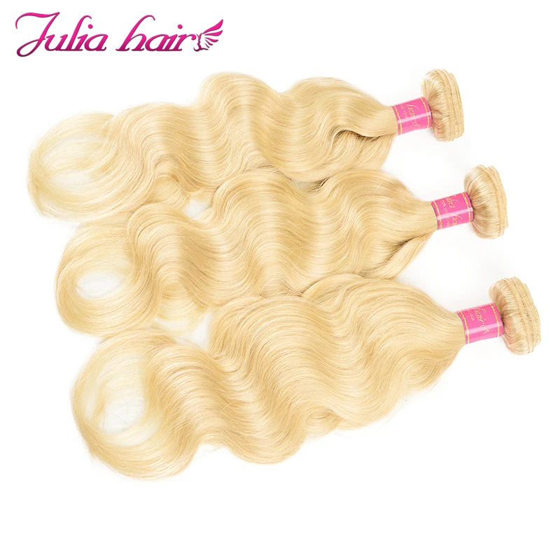 Honey Blonde Color 613 Ali Julia волосы 10 "-24" высокое соотношение бразильские волнистые волосы 3 или 4 пряди с 613 цветными кружевами