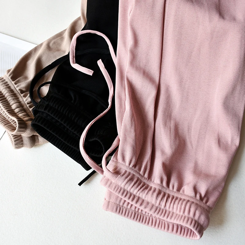 Женские одноцветные длинные штаны с высокой талией и завязками для йоги