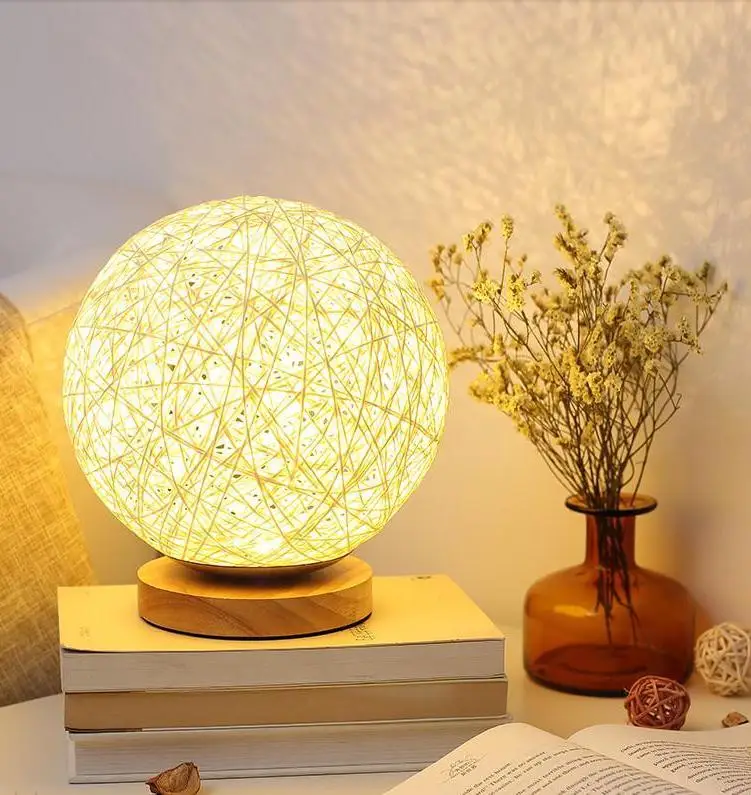 Теплый ротанговый бильярдный светодиодный светильник для спальни, прикроватный простой светильник, современный креативный сон, романтический подарок на день рождения, Рождественский светильник s
