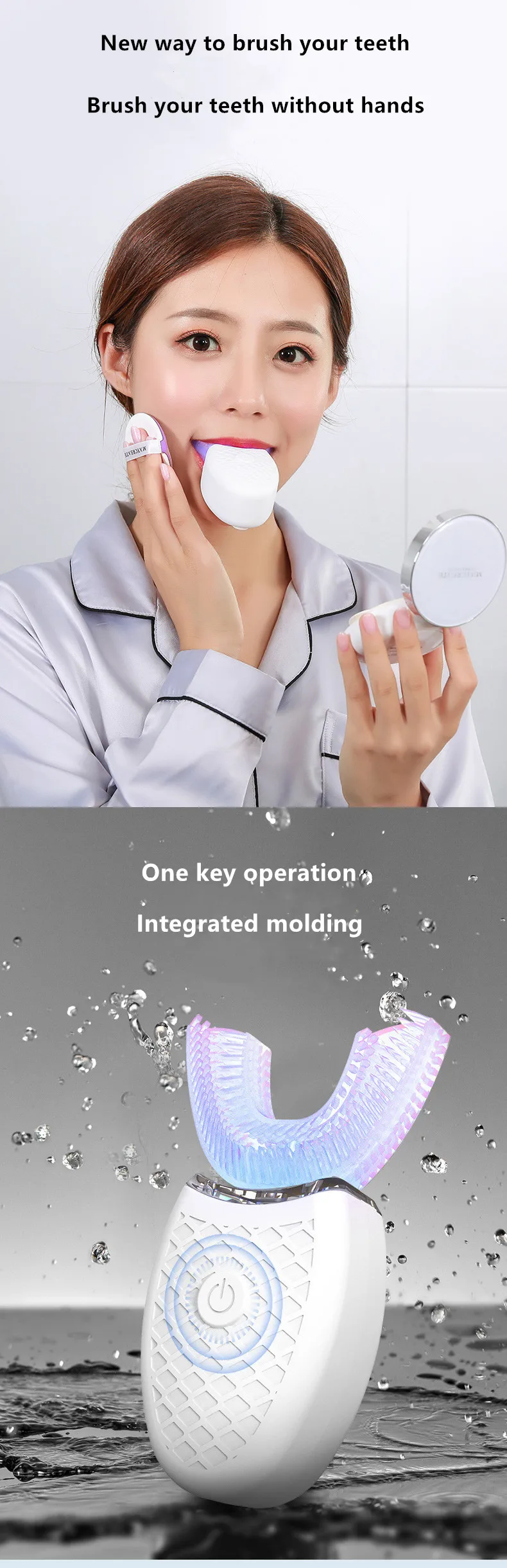Беспроводной Электрический Зубная щётка автоматический ультразвуковой Зубная щётка Водонепроницаемый Еда Класс силиконовые U-образный Зубная щётка