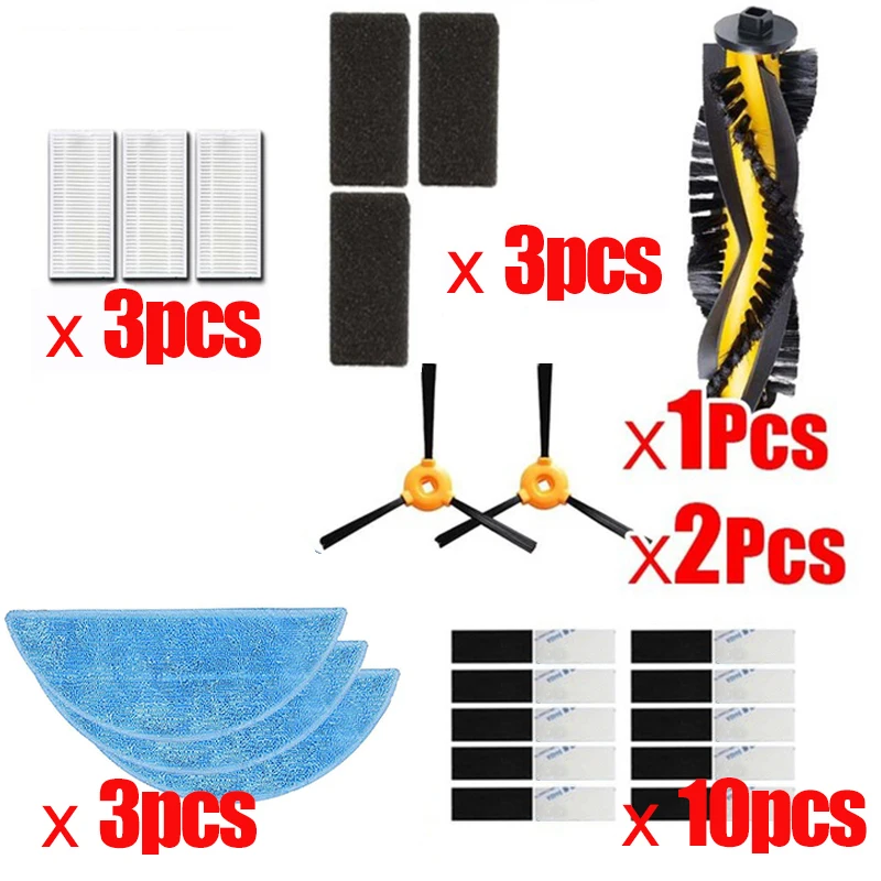 1 * основная щетка + 2 * боковые щетки + 3 * фильтр + 3 * Швабра Ткань + 10 *С нейлоновой застежкой-молнией