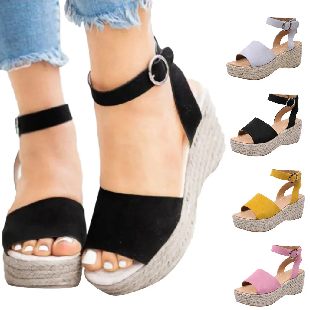 Женские Модные босоножки; босоножки на танкетке; сандалии больших размеров; однотонные босоножки
