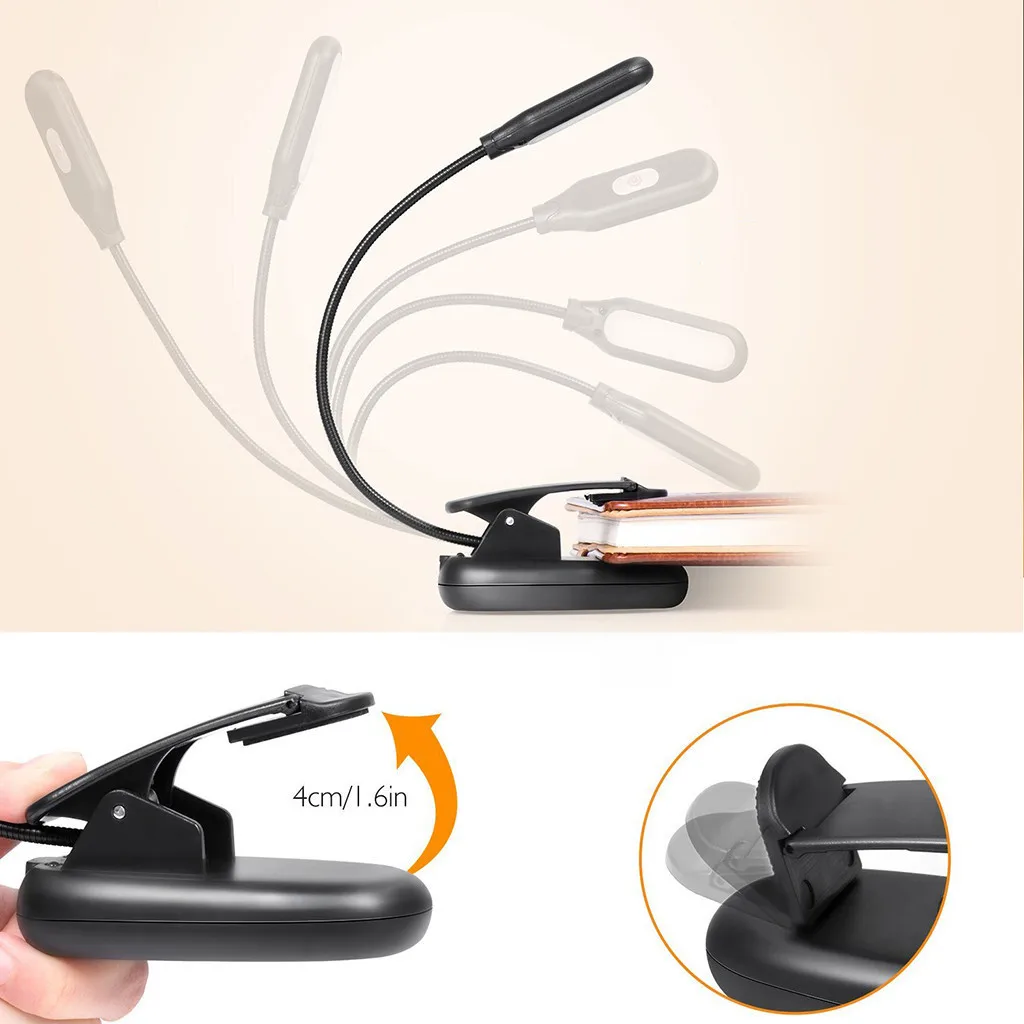 Функция: Этот зажим не только для чтения, но и для многих других мест. Он может использоваться как ночник, детский свет, фонарь для кемпинга, аварийные огни, фонарик, дорожная лампа, свет для музыкальной стойки и т. д.