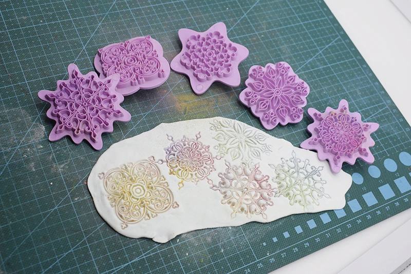 Это пластиковый штамп. Можно использовать для приготовления печенья. С тиснением и изображением цветка. Также, мы рекомендуем сделать глиняные ювелирные изделия заказ керамического Ремесла. Скульптура тиснения очень ясна. Использование вместе с цветным мелом или цветом пудры делает ремесло более удивительным. Этот набор штампов с 5 цветами Мандалы. Если вам нужен другой дизайн, свяжитесь с нами.
