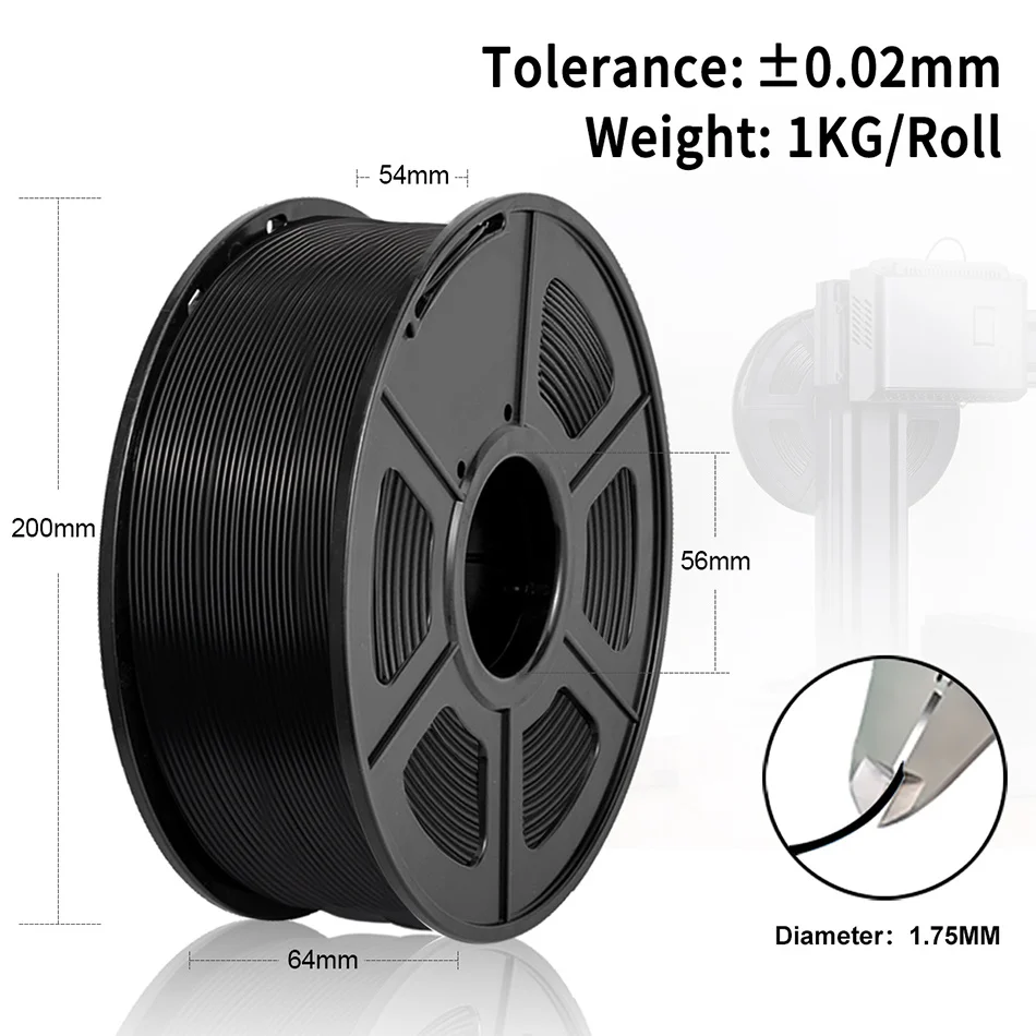 ABS нить отличная ударная прочность, стойкость к истиранию, химическая стойкость и крашение. Легко перемещать поддерживающий материал.