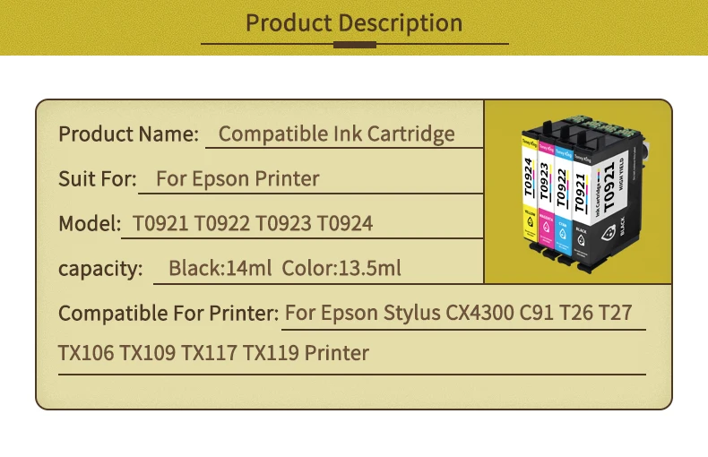 3 шт. X forEpsonT0924XLink картридж желтого цвета (полный с чернилами и чипом)