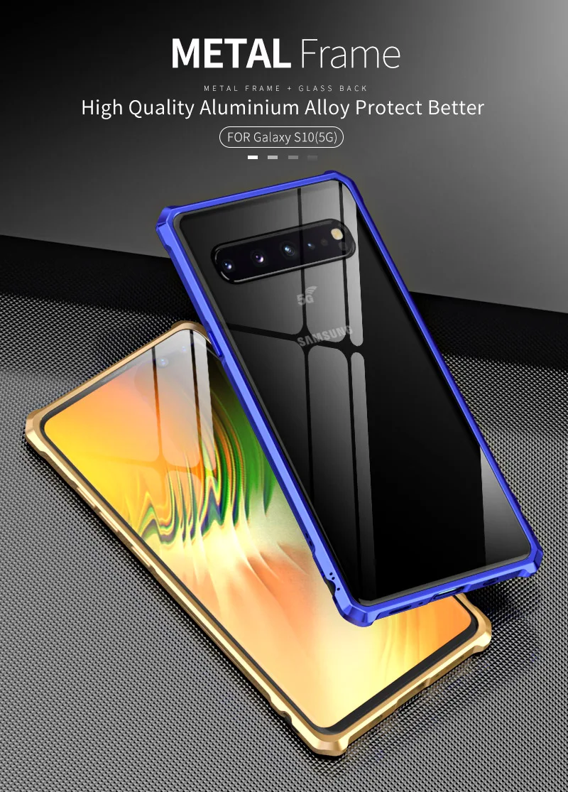 Металлический бампер из сплава и прозрачное закаленное стекло задняя крышка для Samsung Galaxy S10 5G 6,7''