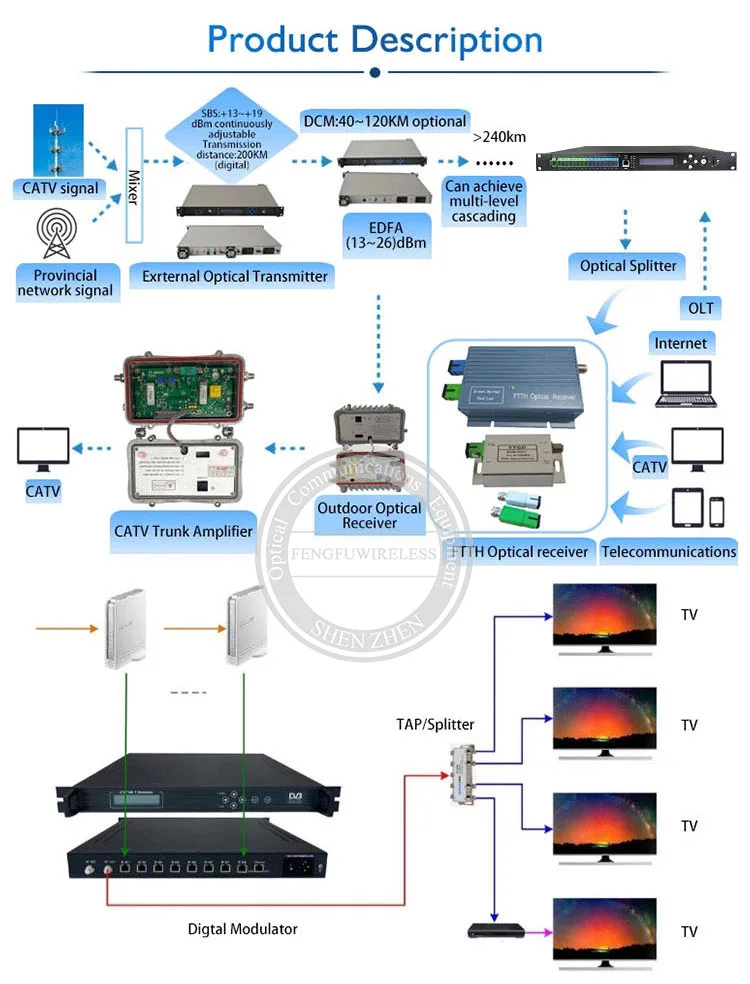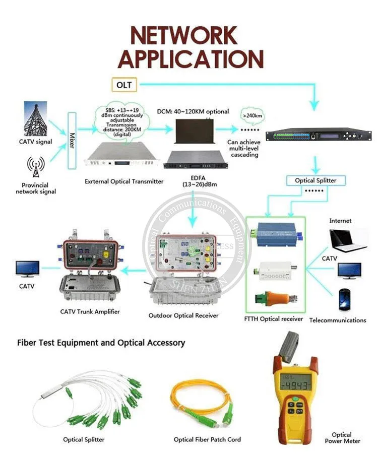 Новый CATV 1550nm EDFA 1310/1490/1550 wdm 8 порт выхода CATV оптический волоконный усилитель, мощность 16/18/20dbm 1U/80W EDFA
