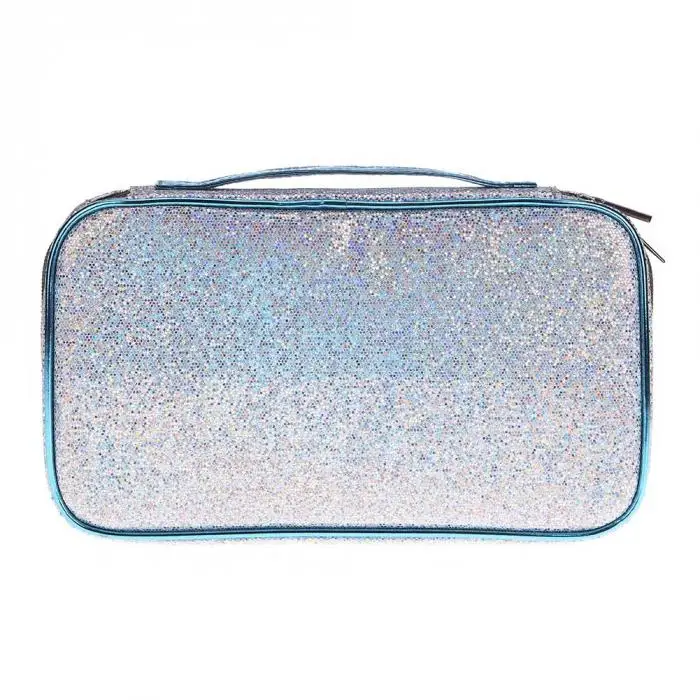 Горячая портативная женская сумка для макияжа, блестящая дорожная сумка, Дамская Косметическая сумка для хранения кистей, органайзер на молнии, чехол для макияжа BVN66