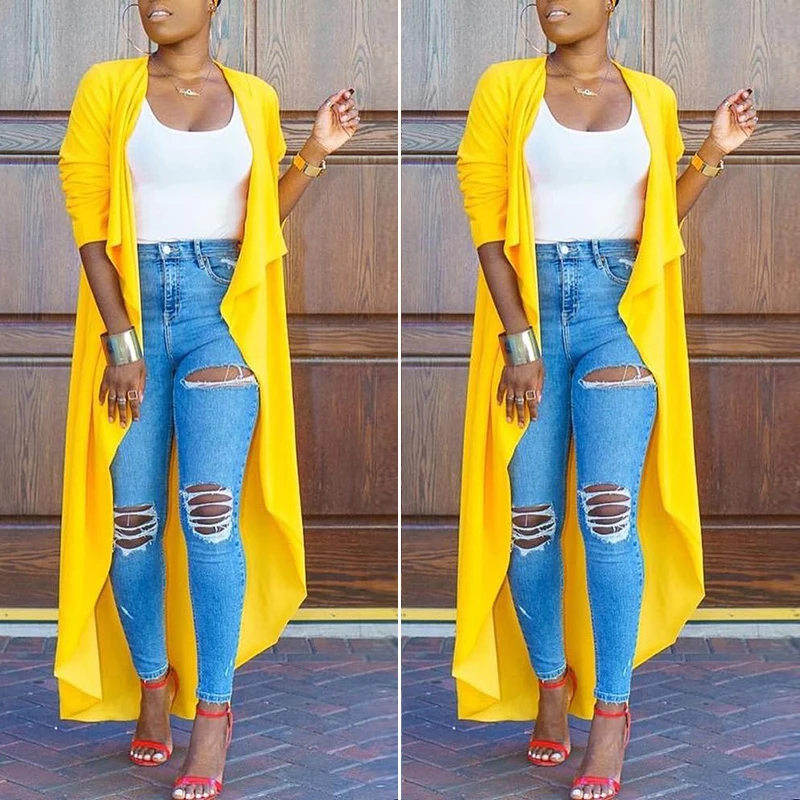 * Описание товара:Новые осенние женские свободные летучая мышь нерегулярные с длинным рукавом пальто Топы длинный кардиган
