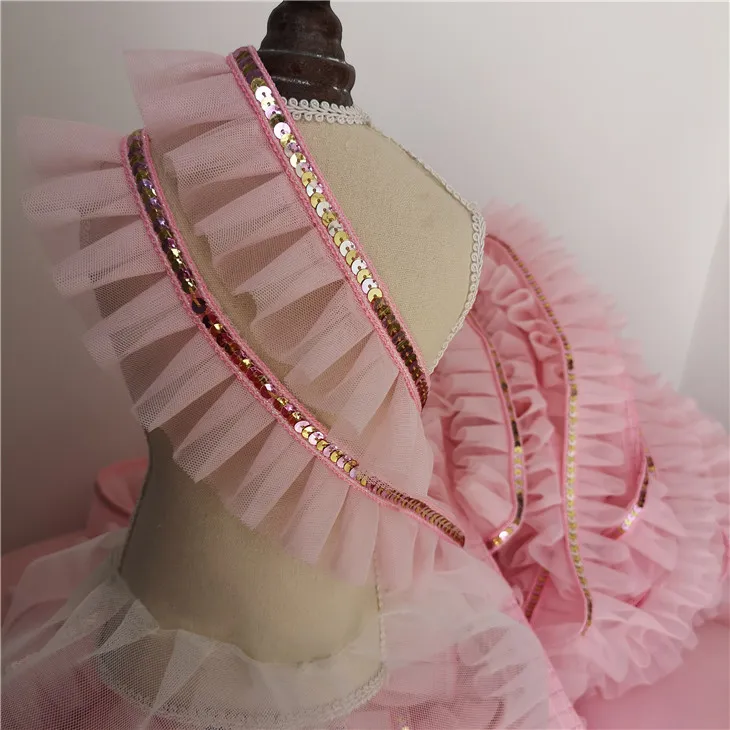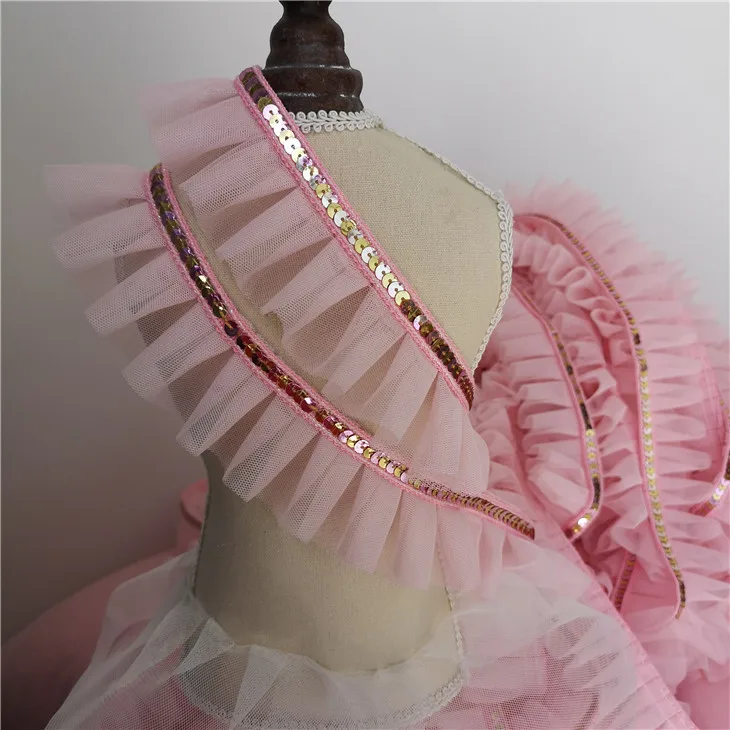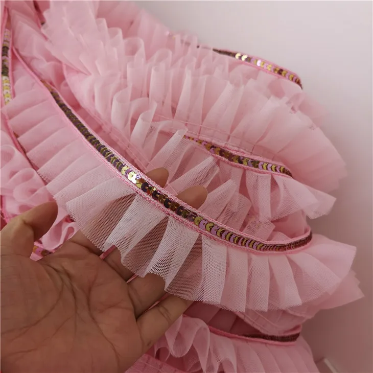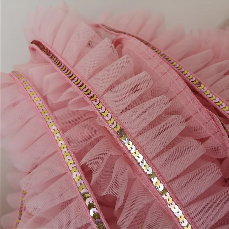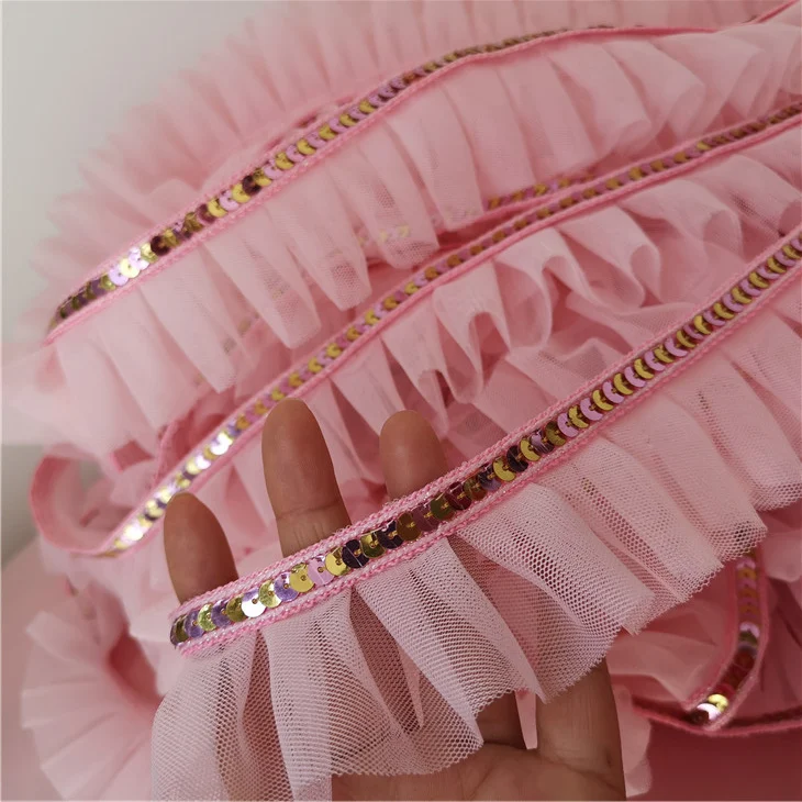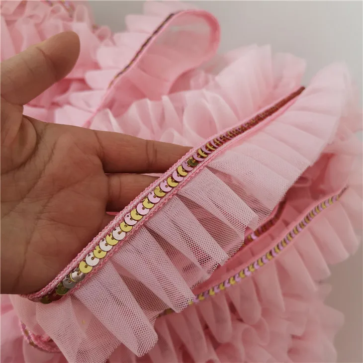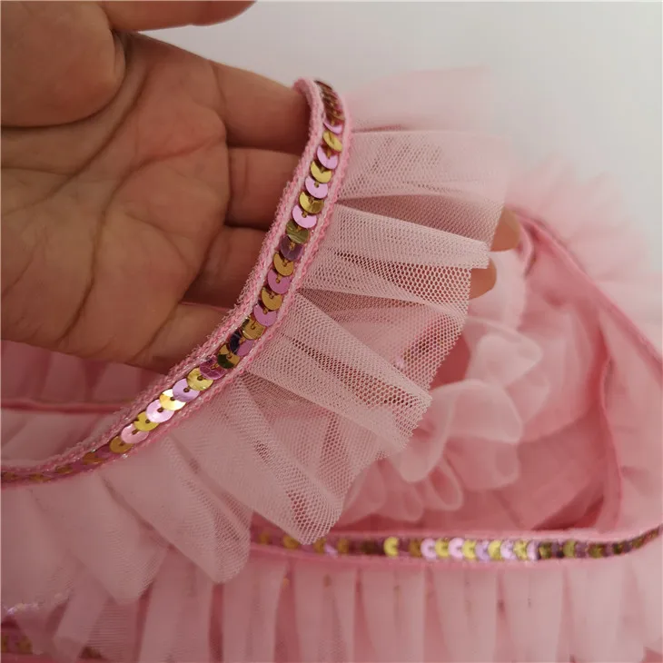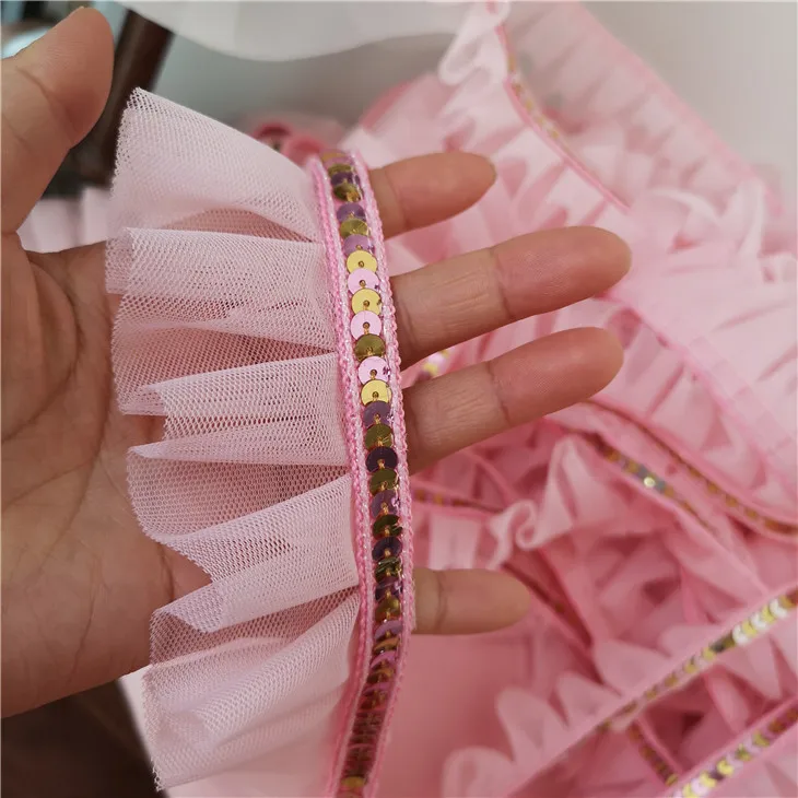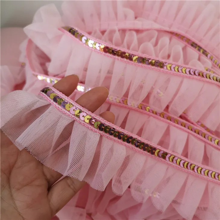 5 см широкая розовая блестящая кружевная 3D плиссированная сетчатая тканевая лента с оборками облицовка гипюра платье воротник головной убор DIY Швейные принадлежности