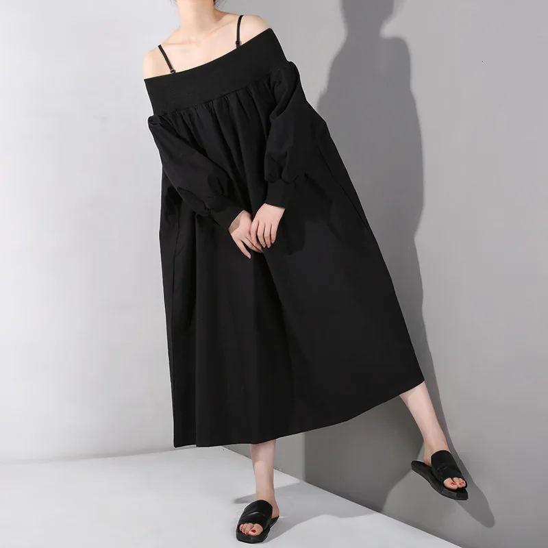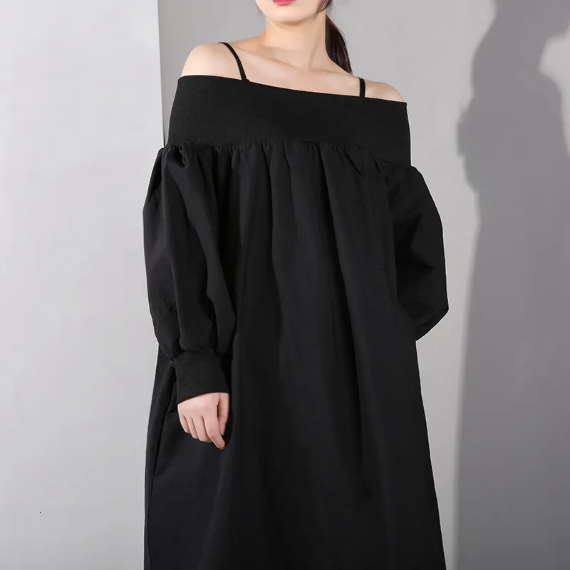 Женское платье с вырезом лодочкой Vefadisa, черно-белое платье на бретельках с пышными рукавами