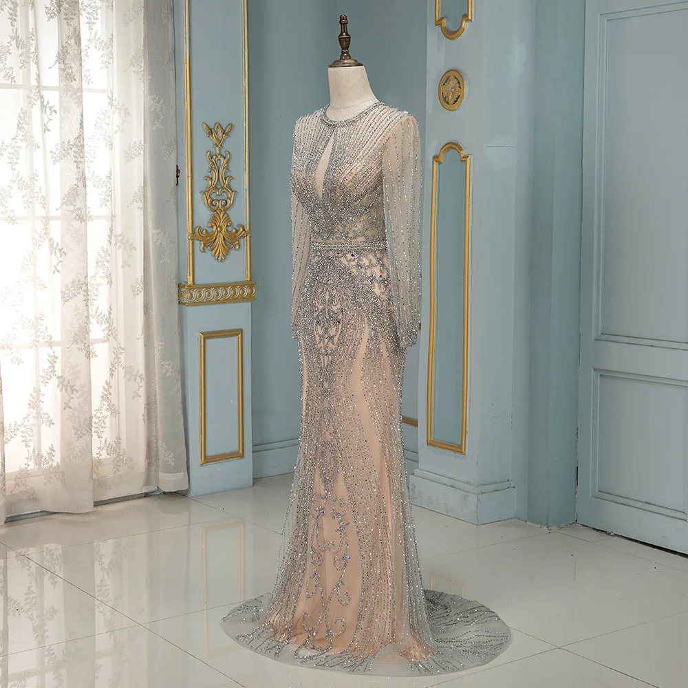 Роскошные серебряные стразы, вечерние платья с длинным рукавом, длинное вечернее платье русалки телесного цвета в наличии