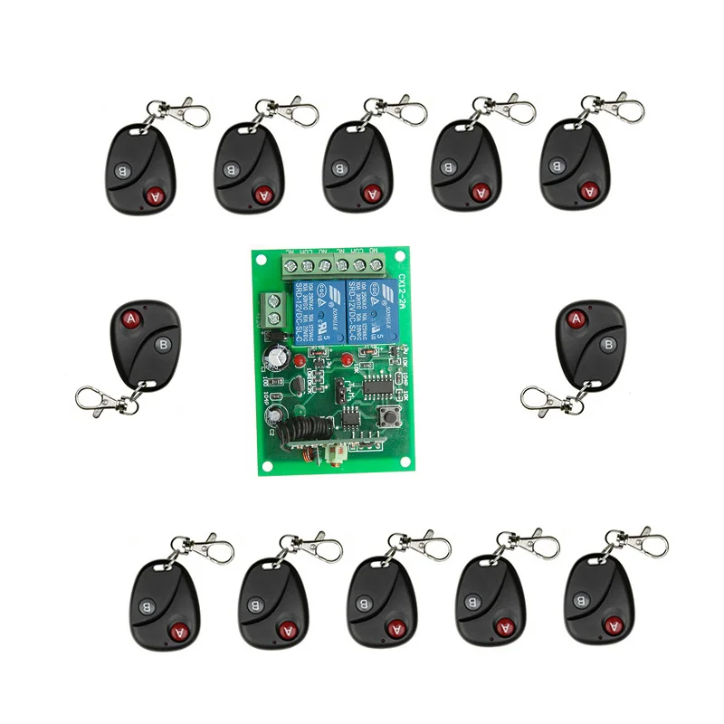 Источник питания: аккумулятор 23A-12V-1 шт.2. Приемник1) переключатель/самозамок: нажмите-> ВКЛ; Нажмите еще раз-> ВЫКЛНажмите одну кнопку для одного времени работы/включения. Нажмите ту же кнопку снова и выключите. (1 канальный переключатель (приемник) Требуется 1 кнопка дистанционного управления (передатчик).2) защелкивается/блокируется: Нажмите-> ВКЛ; Нажмите другую кнопку-> ВЫКЛНажмите одну кнопку для работы/включения, нажмите другую кнопку для остановки/выключения. (1 канальный переключатель (приемник) Требуется 2 кнопки дистанционного управления (передатчик).3) Мгновенный/пробежка: Нажмите и удерживайте-> ВКЛ; Отпустите-> ВЫКЛУдерживайте нажатие одной кнопкой, чтобы включить/включить. Ослабьте палец, чтобы остановить/выключить. 1 канальный переключатель (приемник) нужно 1 кнопка дистанционного управления (передатчик)(