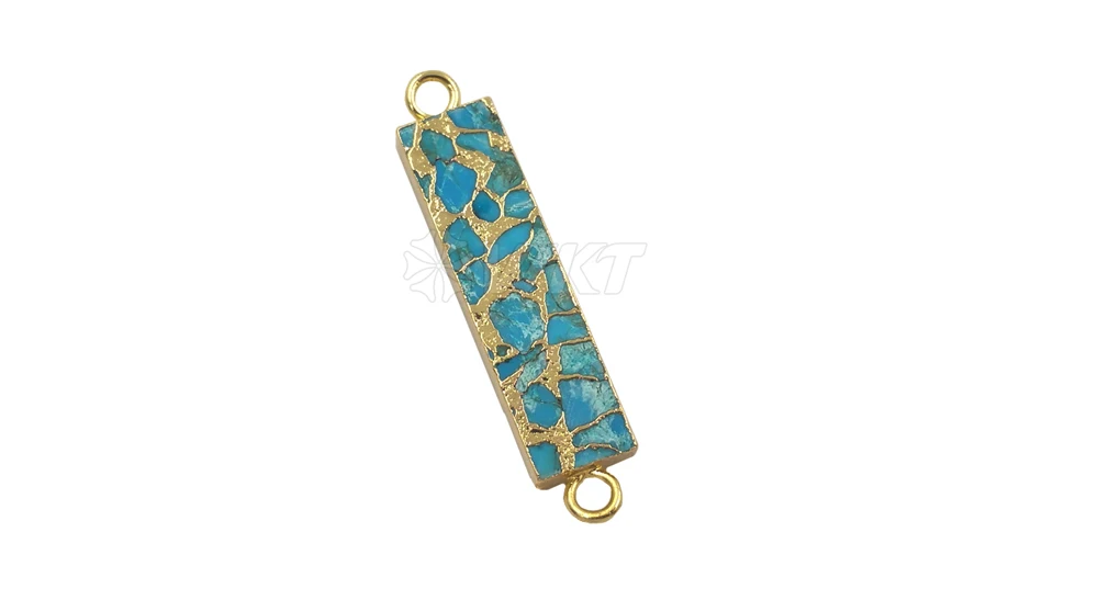 WT-C283 WKT Золотой Гальванизированный прямоугольник синяя венка бирюза двойные обручи Разъем Кулон для изготовления ювелирных изделий