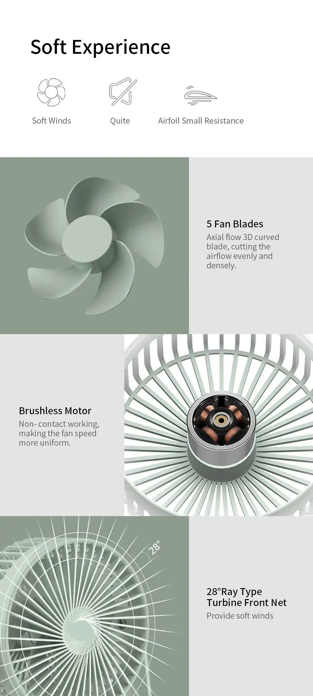 -Вентилятор + аромадиффузор -3 уровня регулируется, 5 3D лопастей вентилятора -360 ° токарная обработка -28 ° лучевой тип передней сетки -30dB бесшумный |