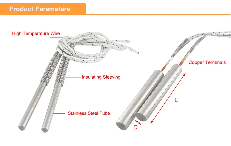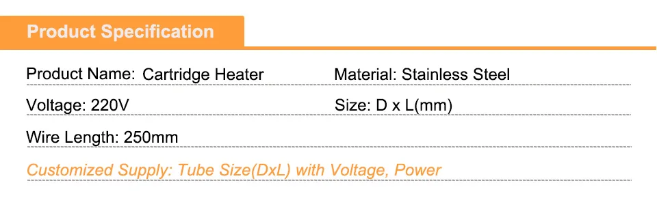 2 шт. 12 мм трубки Диаметр трубчатый нагревательный элемент 220V картридж нагревательный элемент для нанесения печати по фольге мощность 500/600W Название продукта: нагреватель картриджа Размер: 12x250 мм, 12x300 мм (DxL) Длина провода: около 250 мм Напряжение: 220 В Мощность: 500 Вт/600 Вт Материал: 201 нержавеющая сталь Посылка: 2 шт. нагреватели картриджей