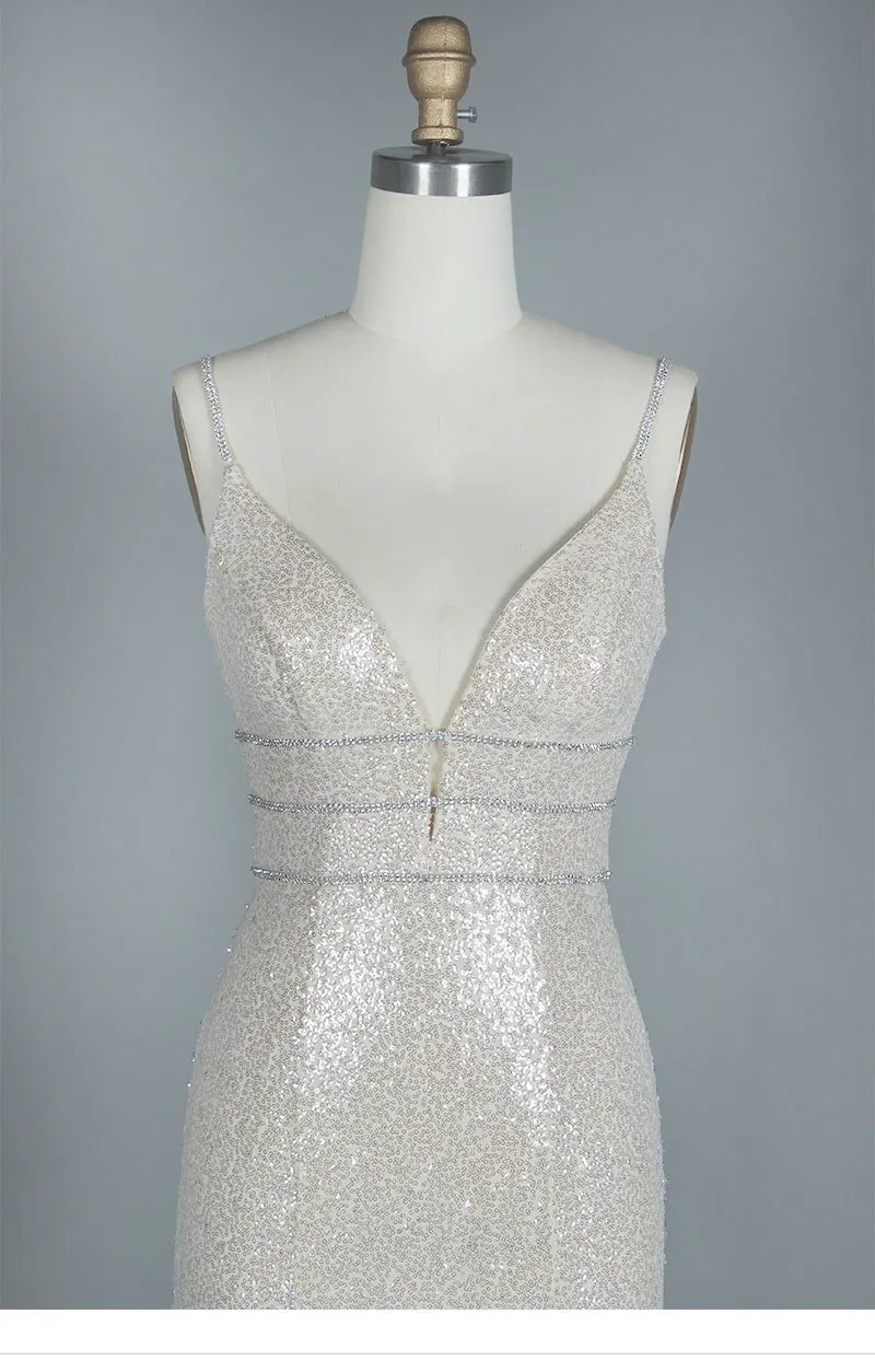 Женское вечернее платье белого цвета с глубоким v-образным вырезом и блестками без рукавов, Элегантное Длинное Вечернее удобное платье для женщин, 2019