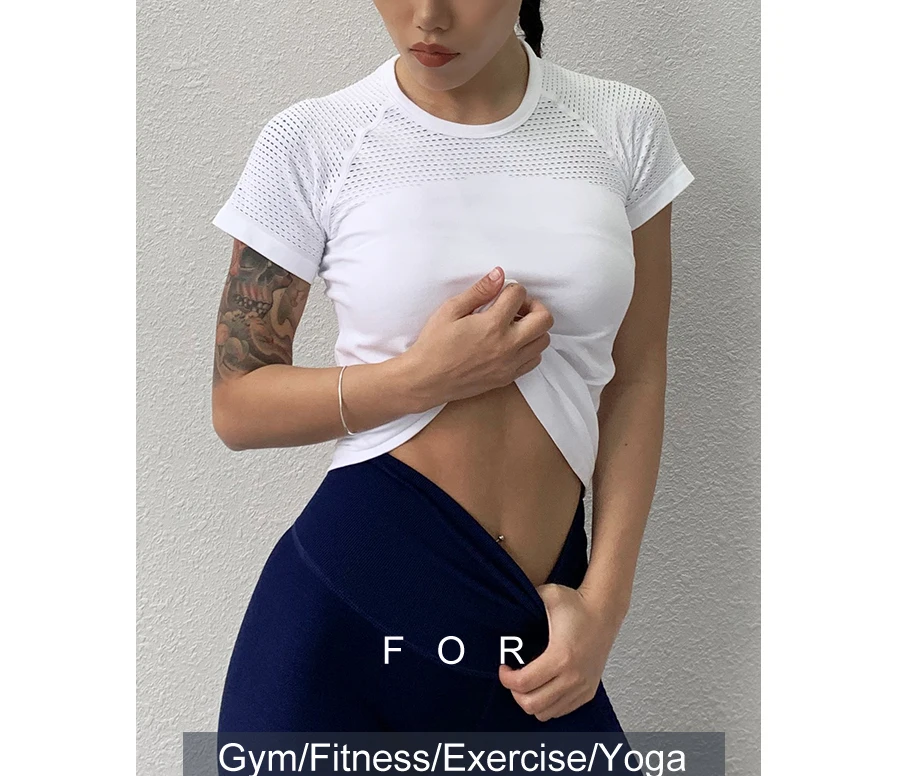 BESGO спортивный топ Женская Спортивная футболка Женская полый футболка для йоги и фитнеса тренировочные спортивные топы Спортивные для женщин сухой крой короткий рукав