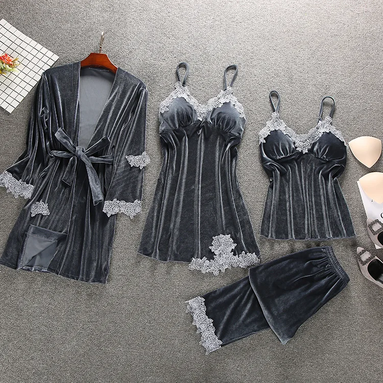 2019 осенне-зимние женские пижамные комплекты Золотая Бархатная 4 шт. сексуальная