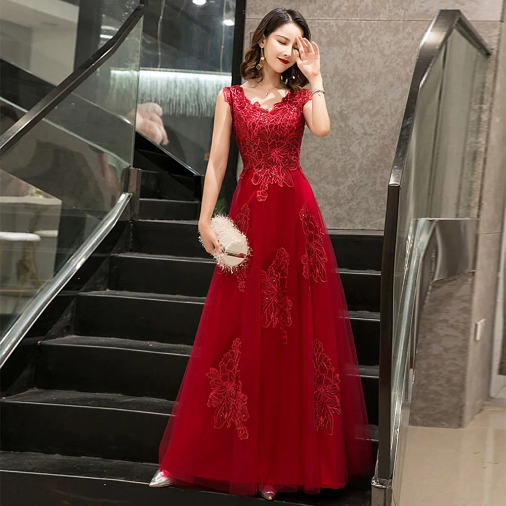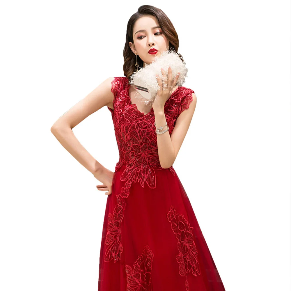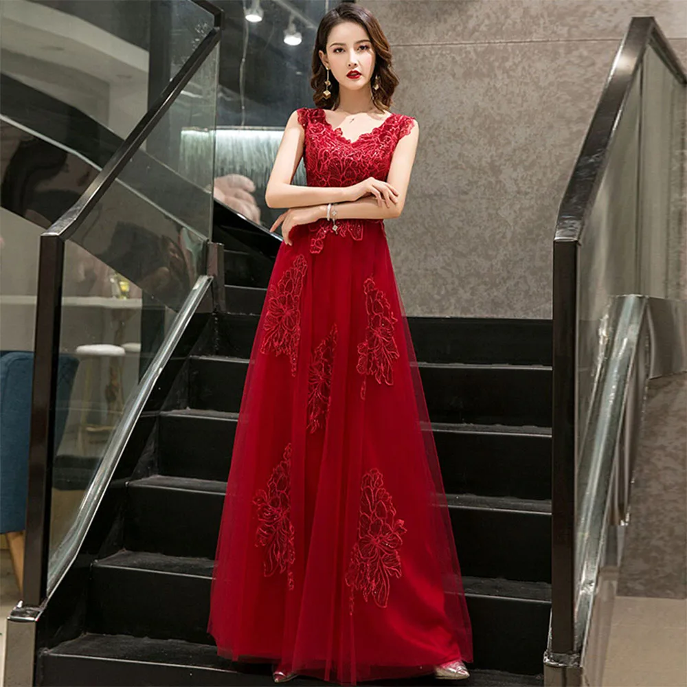 Платье подружки невесты бордовое кружевное длинное платье с аппликацией вечернее платье со шнуровкой сзади Aline