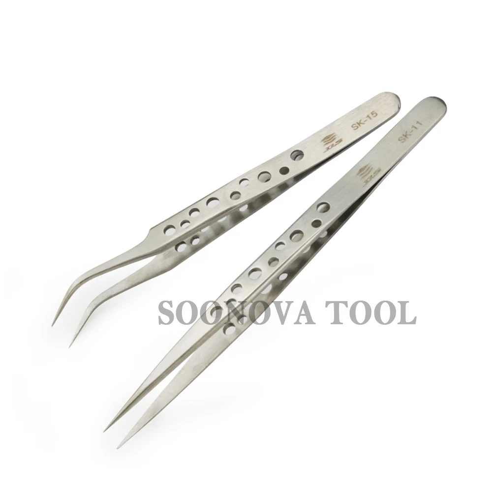 SK-11 SK-15, электронные промышленные пинцеты, изогнутые прямые наконечники, точные Щипцы из нержавеющей стали с отверстием для рассеивания тепла
