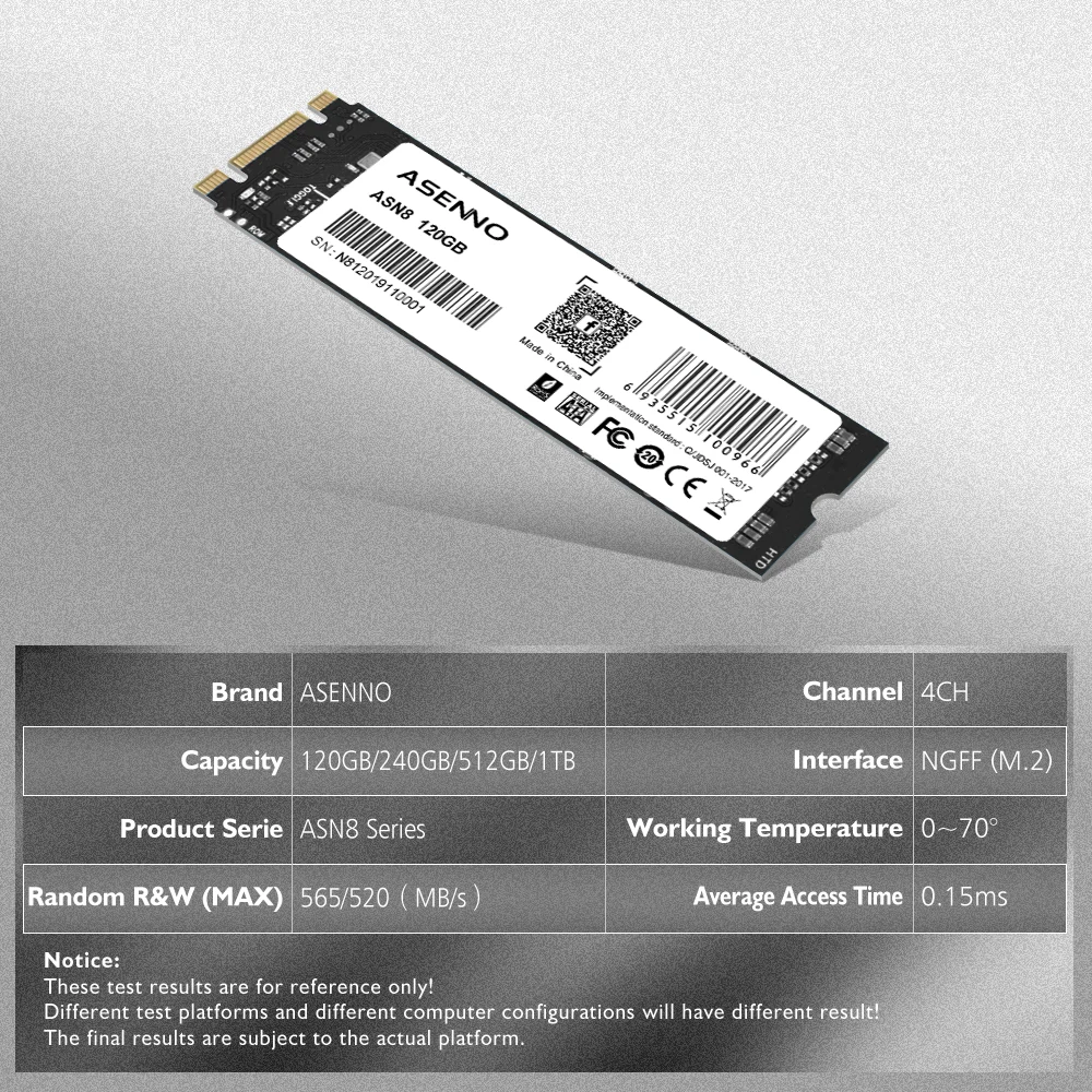 В нашем описании скорость только для справки, скорость SSD будет зависеть от многих факторов, таких как тип интерфейса, уровень компьютерного оборудования, компьютерная система и Тестовая система.