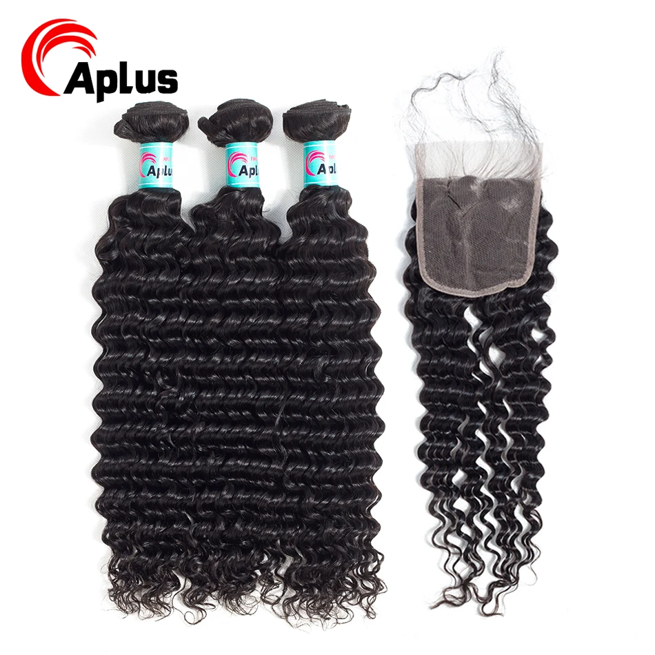 Ali Grace волосы бразильские глубокая волна с закрытием 3 пряди 4x4 швейцарские