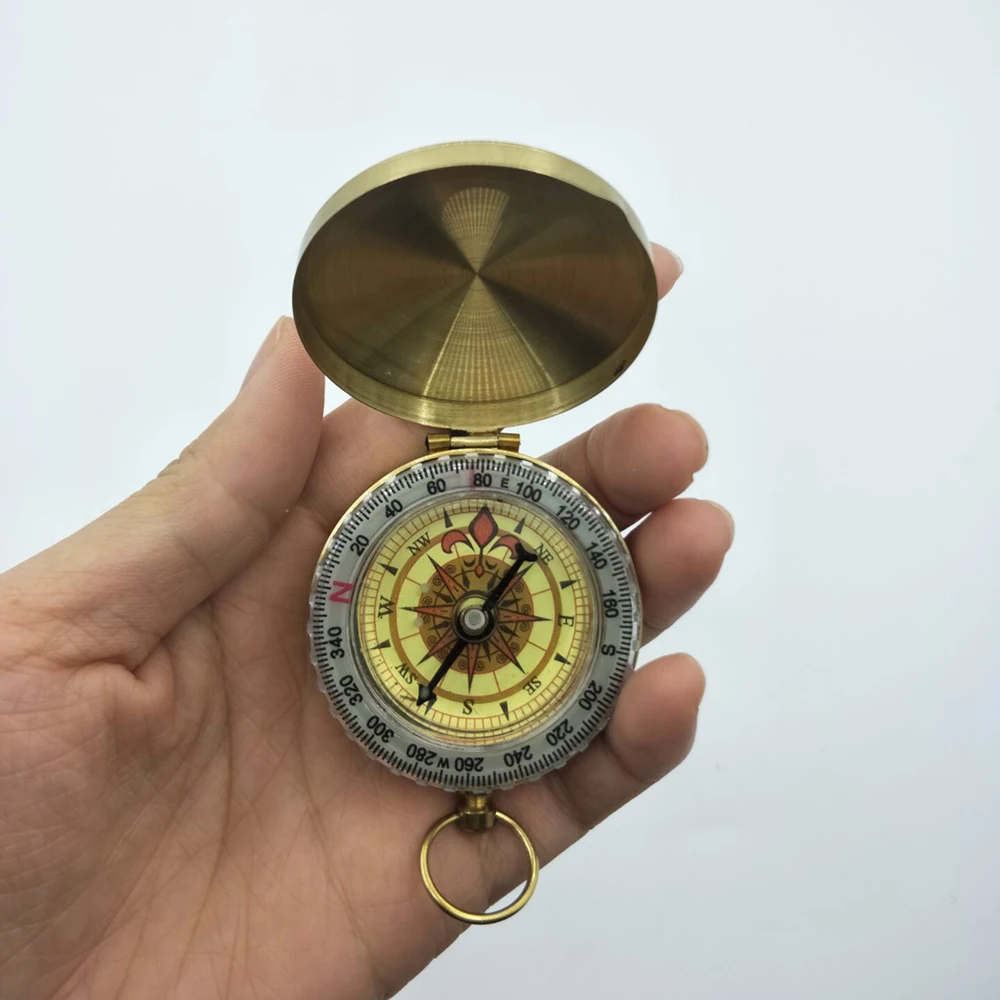 Портативный Компас для кемпинга, походов, карманный латунный золотой цвет, медный компас, навигация с ночным дисплеем