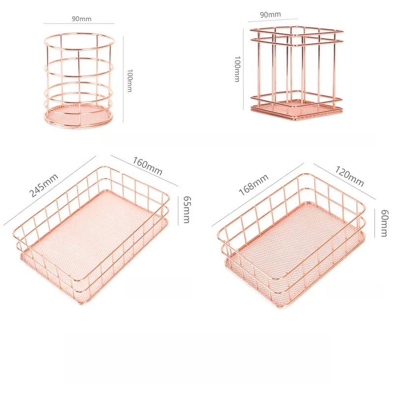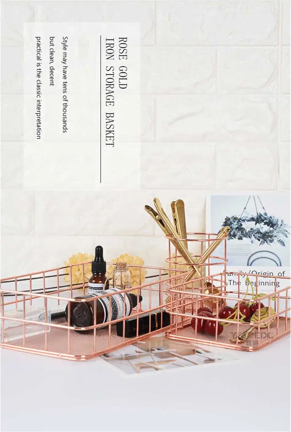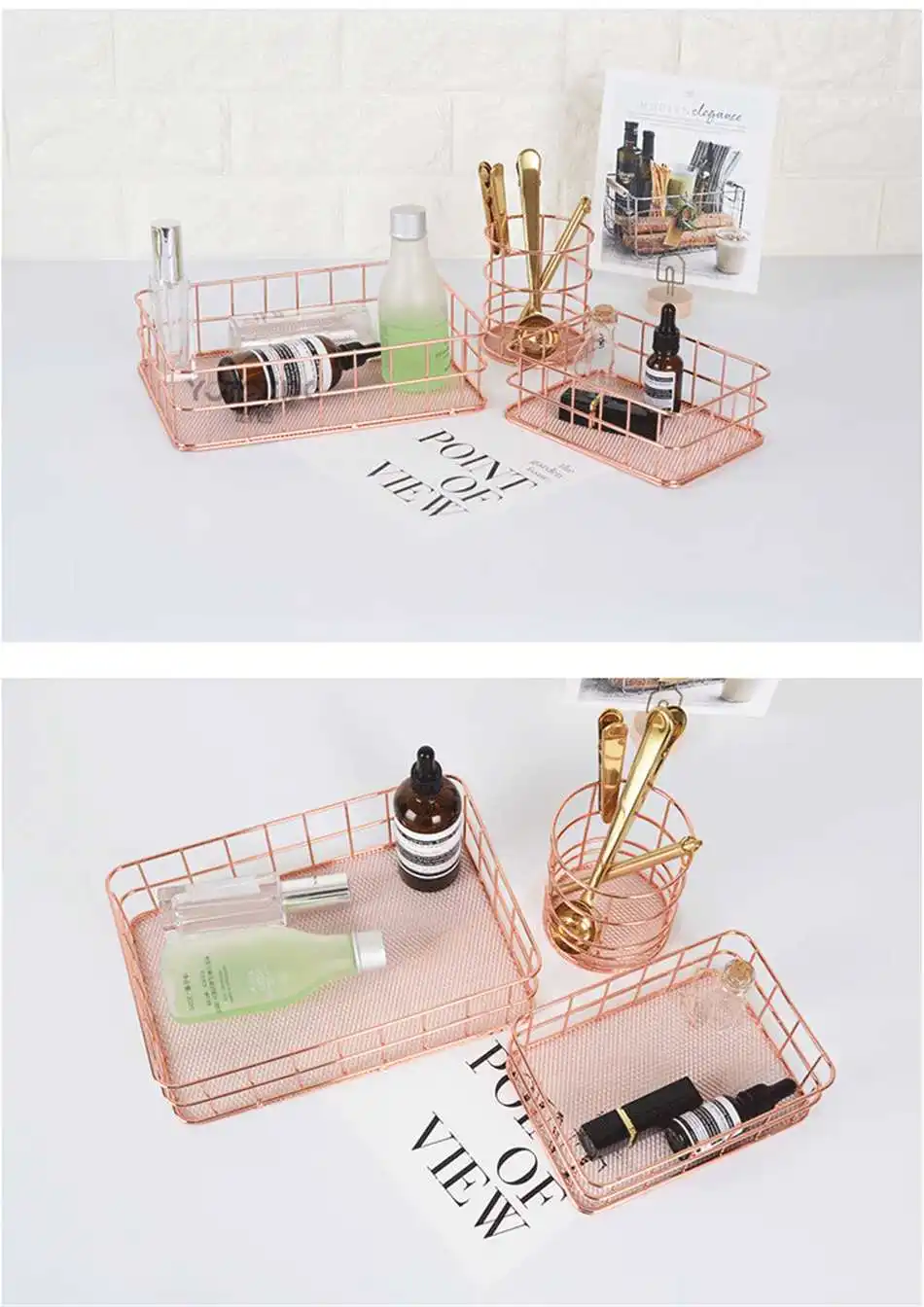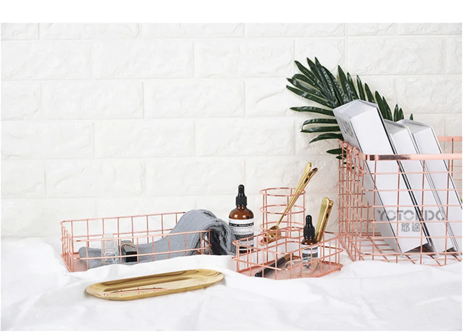 Розовое золото металлические настольные корзины для хранения Органайзер для макияжа Подводка для глаз набор кистей для хранения палочек для еды держатель для ручки