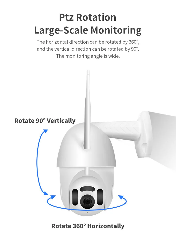 Горизонтальное направление может поворачиваться на 360 °, а вертикальное направление может поворачиваться на 90 °. Угол наблюдения широкий.