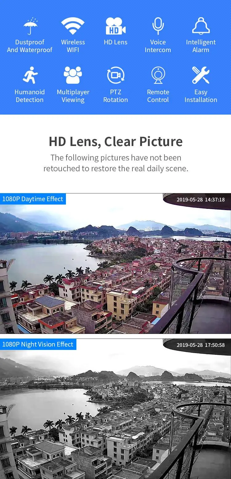 HD 1080 P | двухсторонний разговор | инфракрасная ночная версия | ONVIF Suppport | вращение PTZ на 360 °