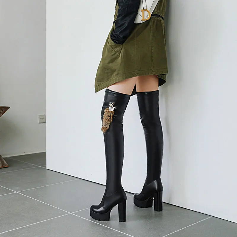 Lloprost ke/Женская осенне-зимняя обувь с круглым носком на платформе; Ботфорты на толстом высоком массивном каблуке; Женские ботфорты; H597