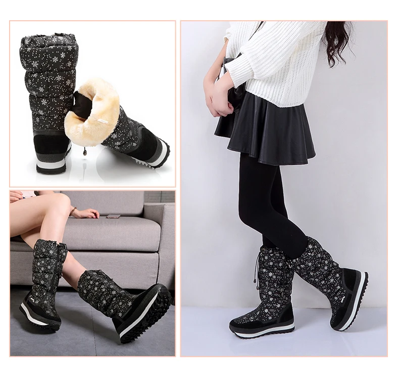 2019 зимние сапоги женские зимние сапоги до середины икры теплая плюшевая обувь водонепроницаемые белые женские сапоги женские высокие сапоги на молнии, большие размеры 42