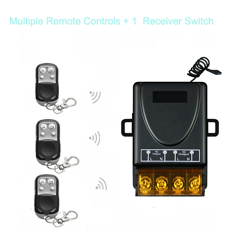 Технические параметры Рабочее напряжение: AC110V -AC220V Номинальный ток: 30A Удаленное расстояние: 100 м Частота приема: 433 МГц (другие частоты могут быть настроены) Чувствительность приема:-98дБ Метод модуляции: ASK (амплитудная модуляция) Размер корпуса: 66 мм * 58 мм * 20 мм Как установить Рабочий режим контроллера: Самоблокирующийся: Пресс кнопки приемник один раз, индикатор Приемника светильник вспышки 1 раз. Нажмите кнопку дистанционного управления для соответствия. Сопряжение переключатель в разложенном виде: Пресс кнопки приемник дважды. Индикатор Приемника светильник вспышки 2 раза. Нажмите кнопку дистанционного управления для соответствия. Реализуйте только функцию открытия. Сопряжение выключено: Нажмите кнопку приемника 3 раза. Индикатор Приемника мигает 3. Светильник Раз. Нажмите кнопку дистанционного управления для соответствия. Выполните только функцию закрытия. Четкий Код: Пресс кнопки приемник 4 раза, индикатор светильник вспышки 4 раза.