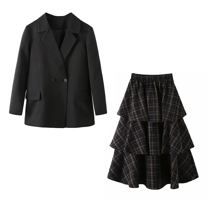 Осенняя Новинка, женские костюмы, юбка, костюм, Большой размер, XL-5XL, повседневная, высокое качество, длинный рукав, черная куртка, модная юбка, комплект из двух предметов