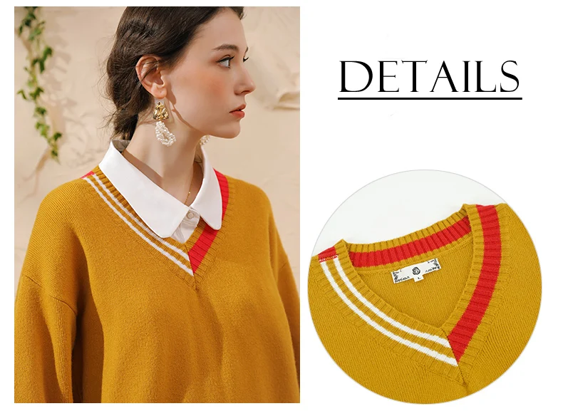 Contrast striped V-neck collar