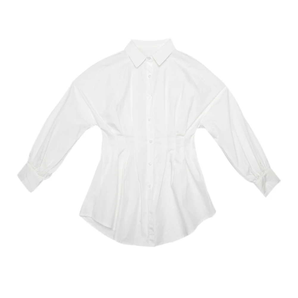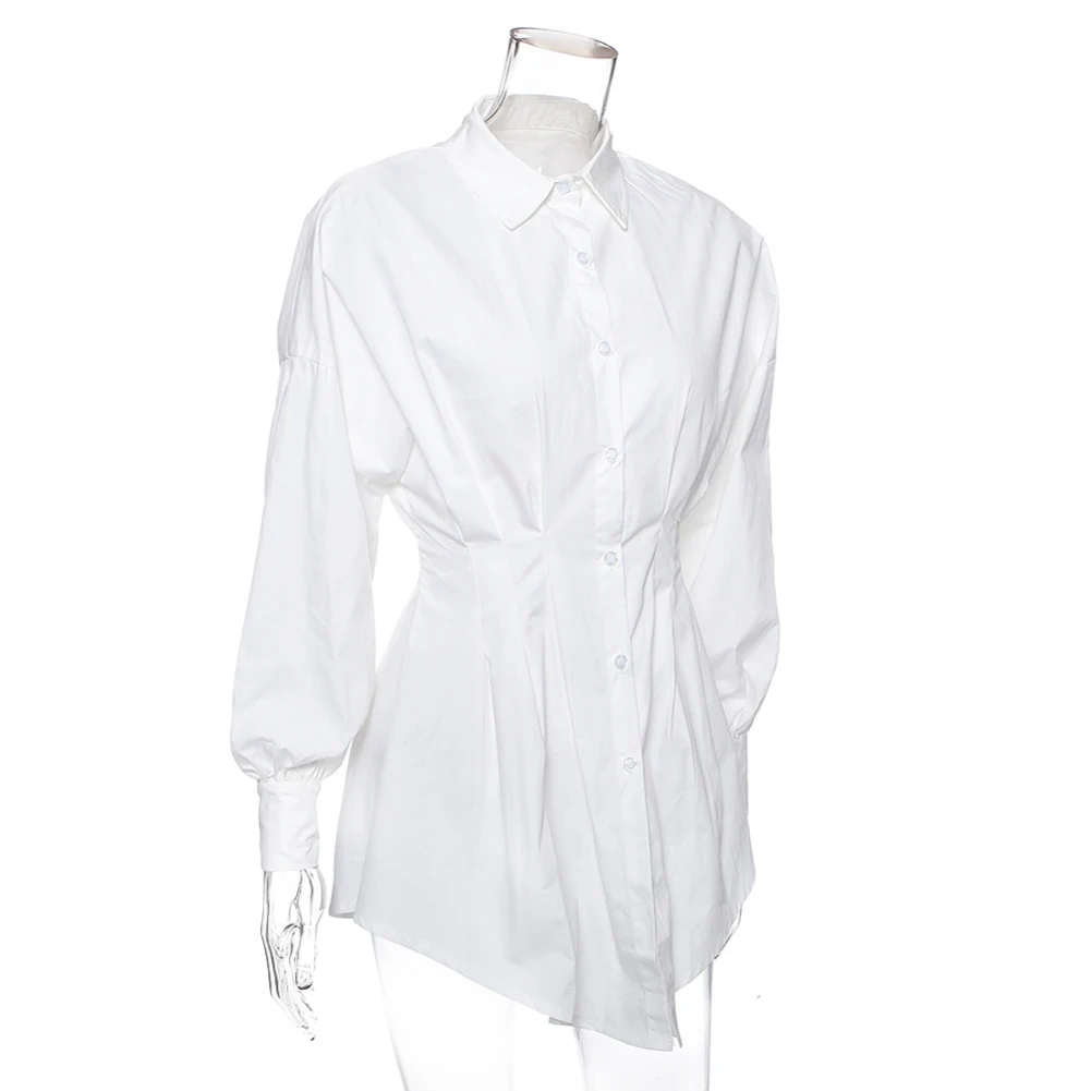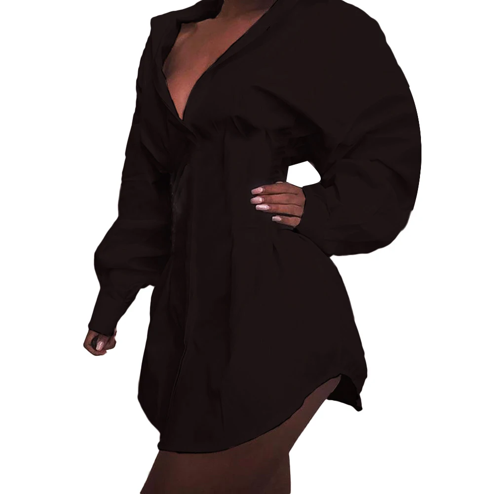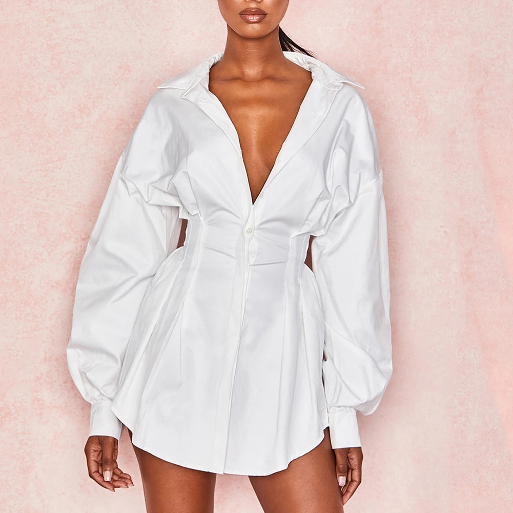 Женская Однотонная рубашка с отложным воротником, v-образным вырезом и длинным рукавом, мини-платье с корсетом